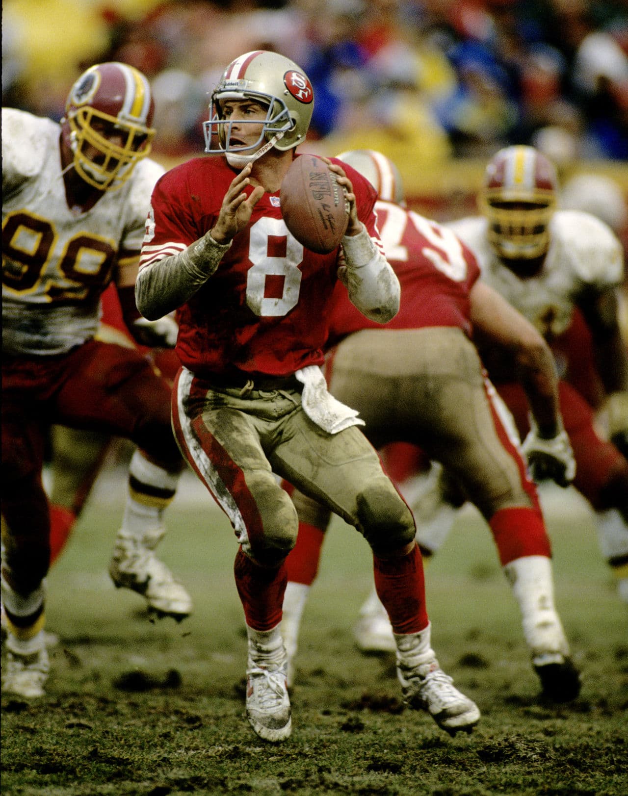 Una destacada época para los Redskins, que incluyó cuatro apariciones y tres títulos del Super Bowl en 11 temporadas, llegó a su fin con una derrota de playoffs fangosa a manos de los 49ers. Steve Young lanzó dos pases de touchdown para que San Francisco derrotara a los campeones defensores del Super Bowl.