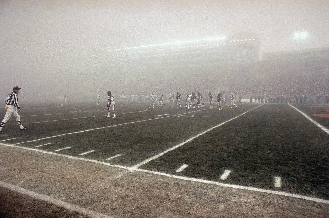 En una de las escenas más surrealistas en un partido de fútbolamericano, una densa niebla envolvió el Soldier Field en un día inusualmente cálidode invierno en la 'Ciudad de los Vientos'. El 'Fog Bowl' (Tazón de la Niebla) se convirtió en uno de los juegos más memorables en la historia de los playoffs de la NFL, no debido a la acción en el campo de juego, sino debido a que nadie lo pudo ver. Los Bears ganaron, al menos esa es la información oficial.