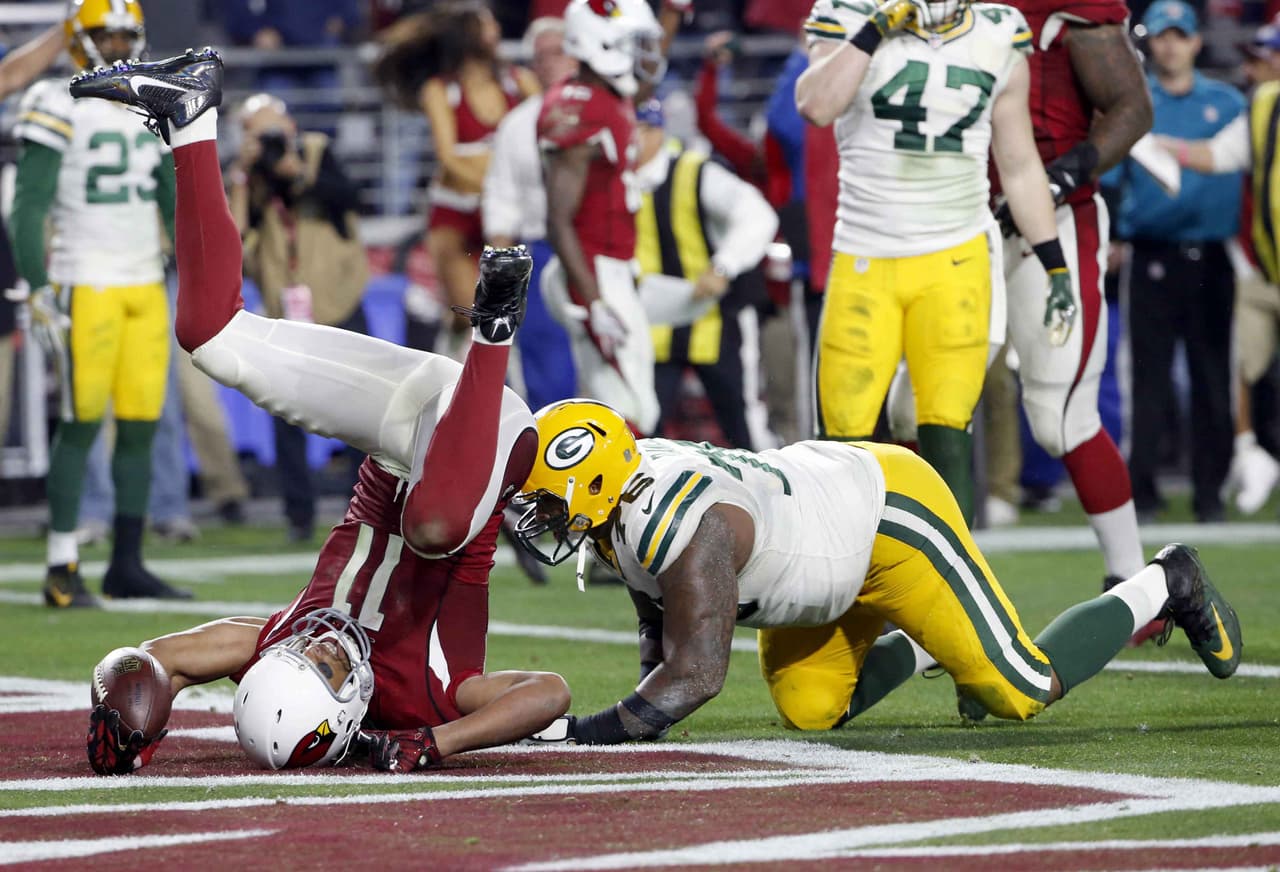 Los Cardinals salieron como grandes favoritoss y cuando parecían haber asegurado el triunfo con una cuarta y 20 para Green Bay con menos de un minutos en su propia yarda 5, Aaron Rodgers lanzó un plegaria contestada por el receptor Jeff Janis y en la última jugada del tiempo regular otra vez Rodgers lanzó un 'Ave María' que el mismo Janis atrapó para llevar el juego a la prórroga. Tras un volado repetido por un error del oficial al no girar la moneda en el lanzamiento, Arizona ganó la primera posesión del tiempo extra. Larry Fitzgerald en ese momento se robó el show con una recepción de 75 yardas que dejó el ovoide en la yarda 5 y dos jugadas después, el propio Fitzgerald tomó un 'pase pala' de Carson Palmer para anotar el touchdown de un juego de locura en el desierto.