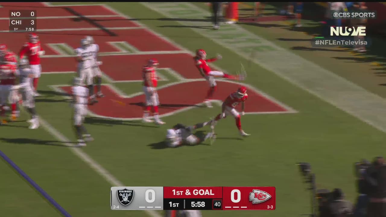 Los Kansas City Chiefs nunca miraron atrás en un triunfo arrollador ante Las Vegas Raiders: es su victoria más desequilibrada sobre los Raiders en las 133 veces que los dos equipos se han enfrentado. Rashee Rice terminó con dos de los tres lanzamientos de touchdown de Mahomes y siete recepciones en total. Travis Kelce tuvo 54 yardas recibiendo. Marquise Brown tuvo su tercera atrapada de touchdown en dos juegos. Y nueve jugadores diferentes lograron una recepción para Kansas City esta tarde.