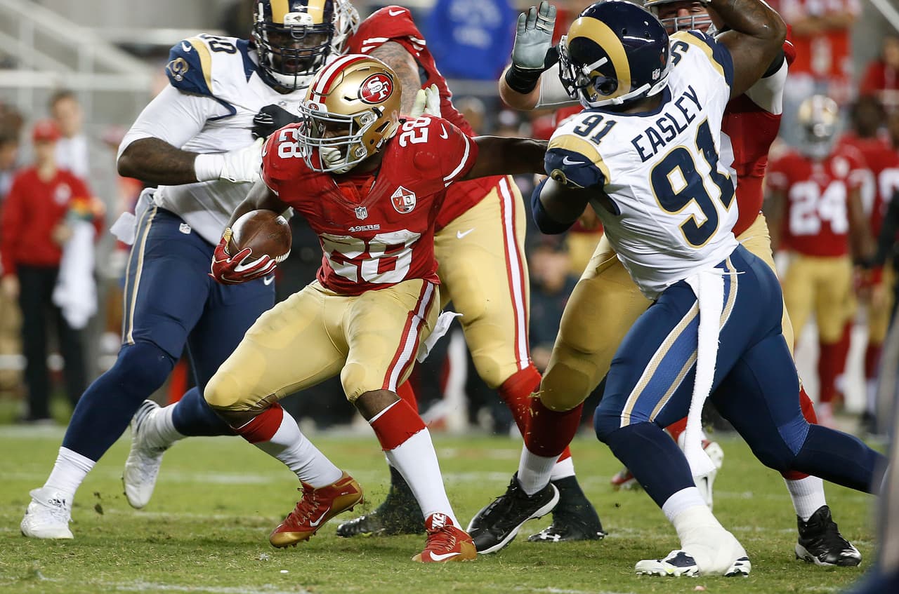 Carlos Hyde tuvo una gran noche en el Levi's Stadium haciendo dos de los cuatro touchdowns de los 49ers.