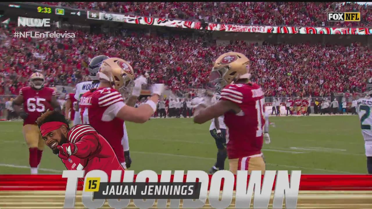 Jauan Jennings fue el caballo de batalla en el último cuarto para regresarle la ventaja a los 49ers, tuvo recepciones importantes para que la ofensiva siguiera en el campo de juego y al final coronó recibiendo el pase de Brock Purdy en la zona de anotación.