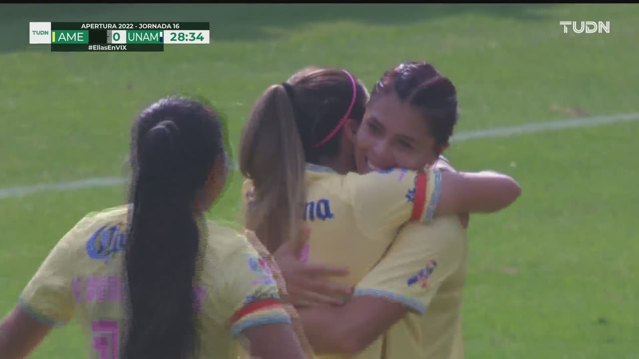 ¡Pincelada de Katty! La delantera remata de chilena y América ya gana 1-0