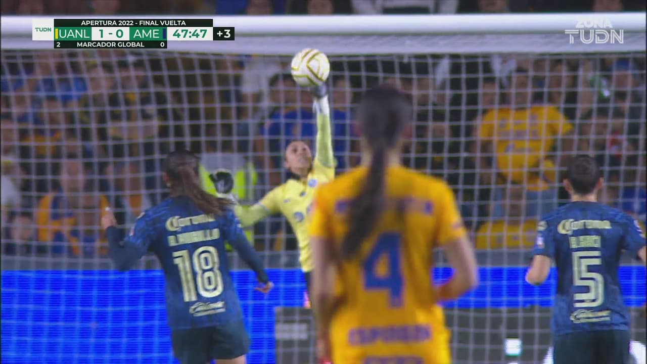 La delantera de Tigres metió un potente zapatazo desde los linderos que la portera alcanzó a desviar.