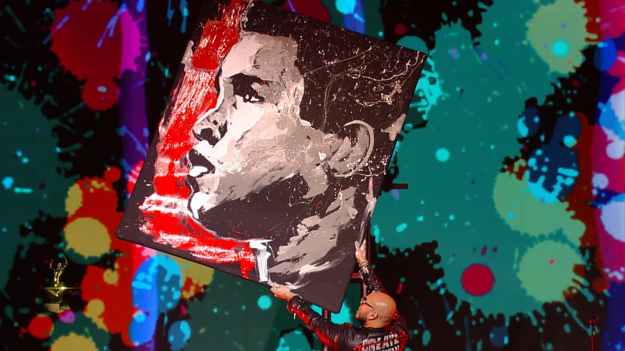 El artista David Garibaldi, un destacado performance painter, realizó una fantástica obra en honor al legendario boxeador que murió este año durante la gala de los Premios Univision Deportes.