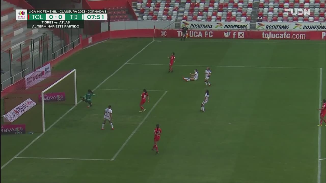 Brenda Da Graca conduce desde atrás de media cancha y se cuela al área, pero desvían su tiro que Alejandra rechaza.