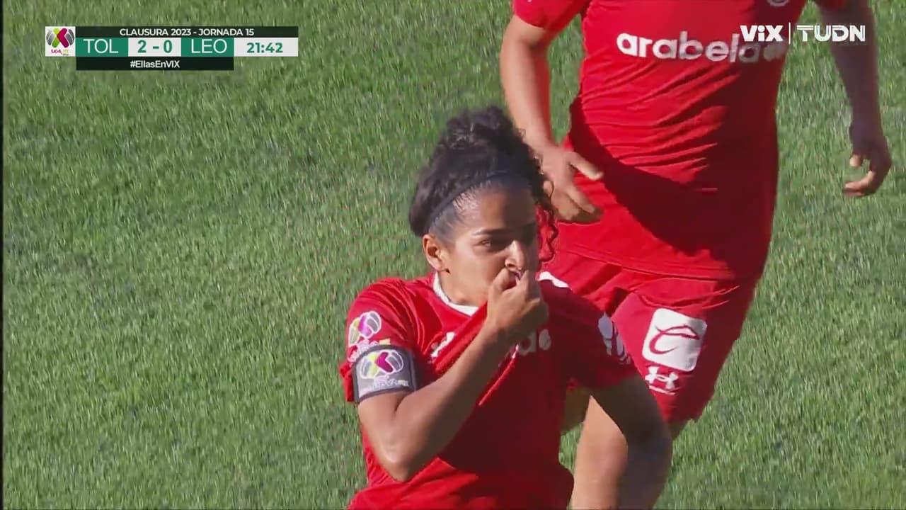 La delantera de Toluca hizo una gran recepción y con el zurdazo perforó la meta de León al 20’.