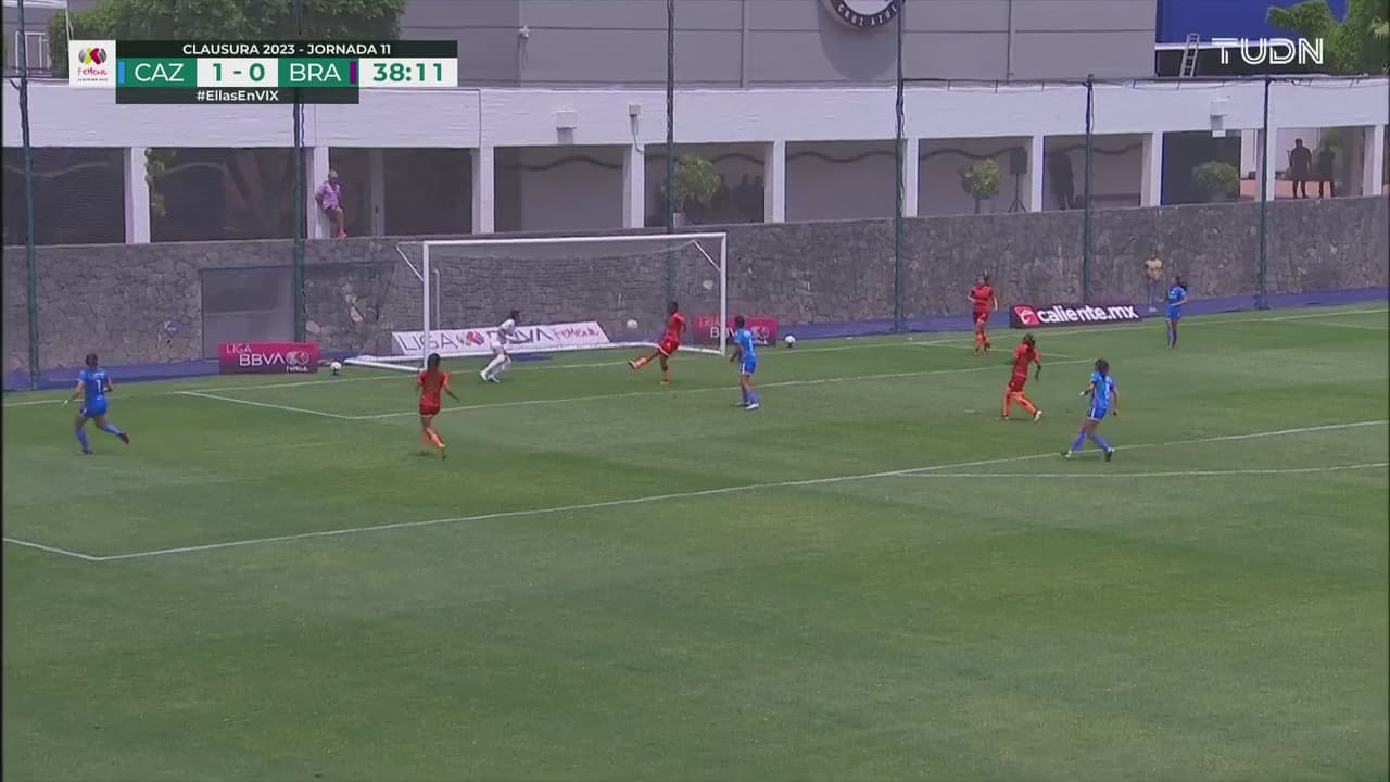 Julitha alcanza a meter la pierna al remate de Norma Palafox que llevaba intención de gol.