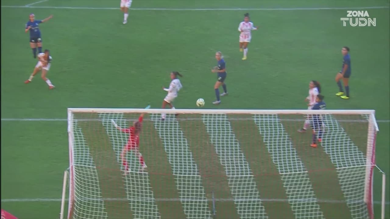 Sabrina se encontró la oportunidad de disparar a gol, pero la pelota se negó a entrar a la red a los 51’.