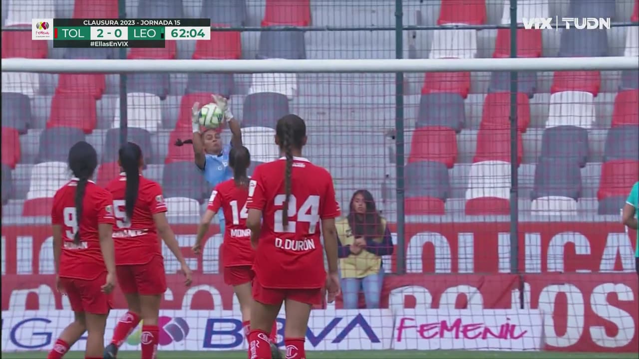 León no baja los brazos y con el tiro de Linda inquietó el arco de Toluca que defiende Thompson al 61’.