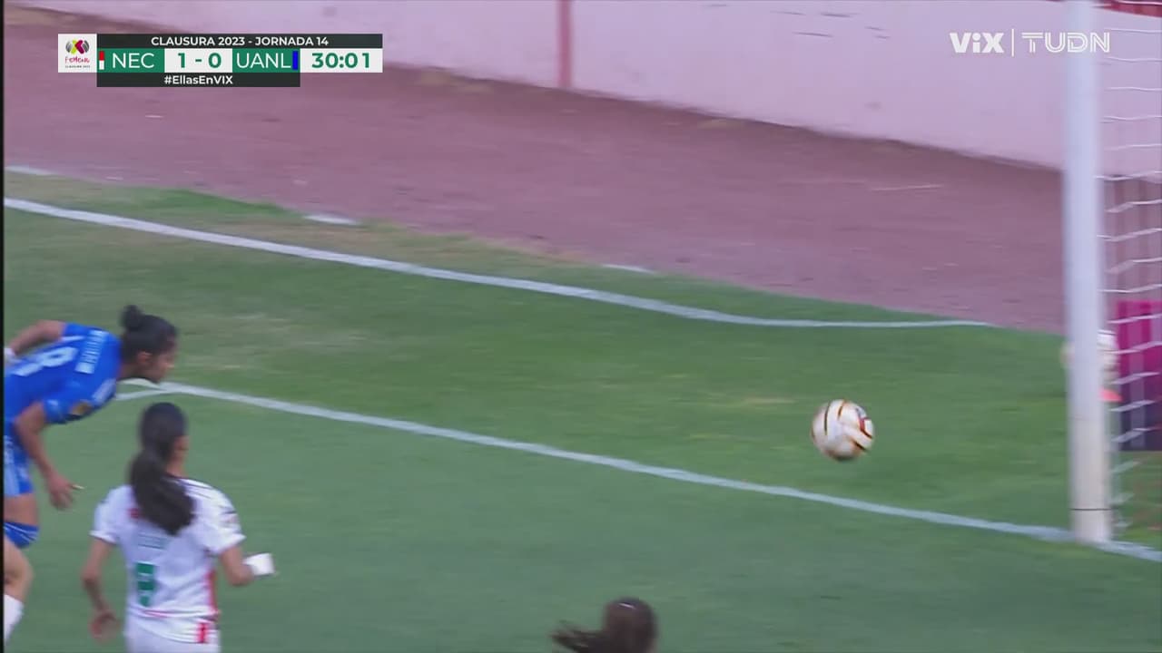 Centro que no puede aprovechar la jugadora de Tigres para empatar el partido al 30’.