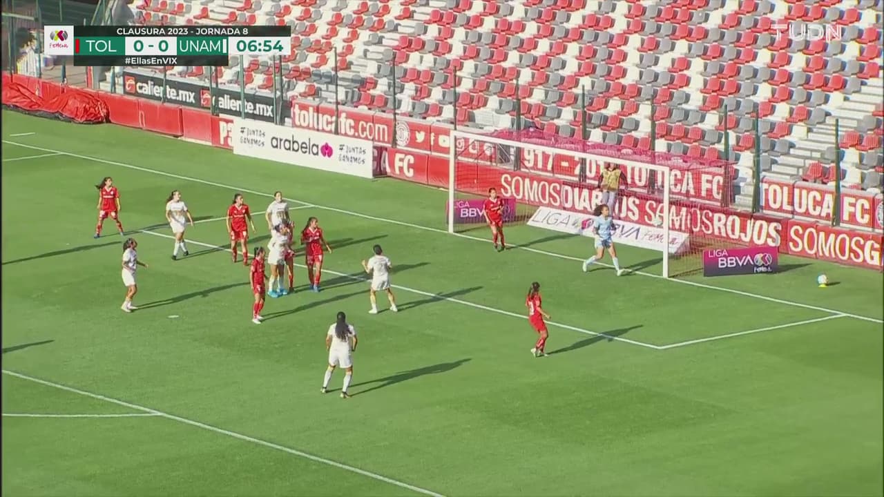 Delgado buscó rematar con la testa el tiro de esquina de Dinorah Garza pero este se va por un costado.
