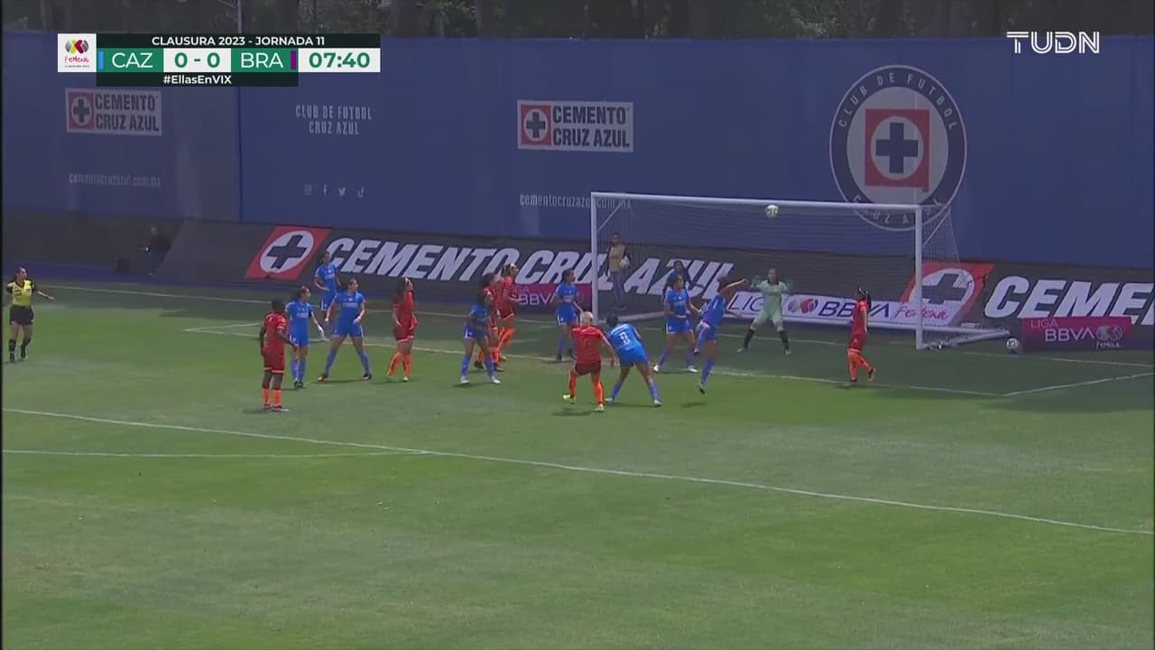 Miah prendió la esférica con la pierna derecha pero la mandó por encima de la cabaña de Maricruz González a los 8'.