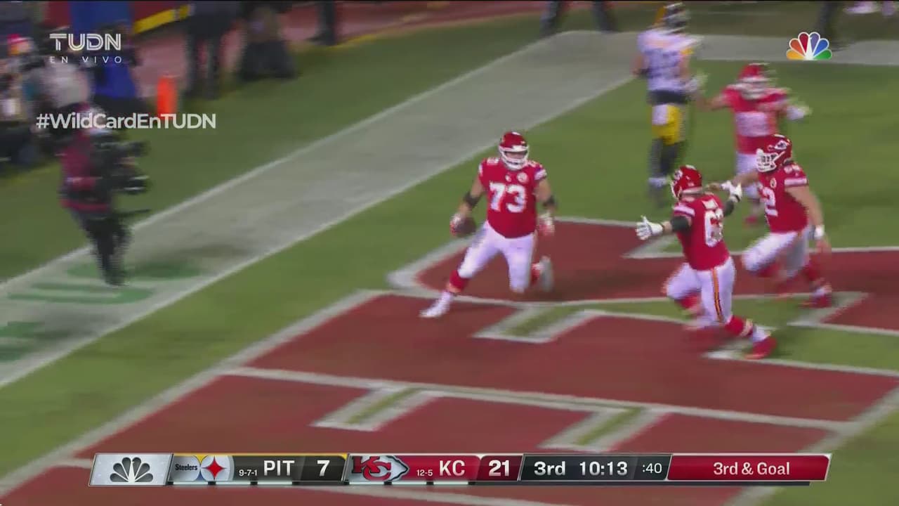 El qb de Kansas City engañó y sacó un pase sorpresivo para su corredor, quien logró el TD.