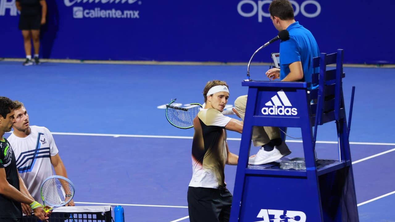 Alexander Zverev sorprendió en el Abierto Mexicano de Tenis 2022 por su explosivo temperamento que le hizo golpear con la raqueta la silla donde se encontraba el juez del encuentro de dobles que disputó la noche del martes hasta en cuatro ocasiones.