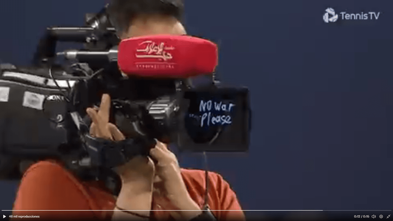 Con el mensaje escrito en inglés, Rublev decidió pedir al mundo y en específico a su país, que detengan la guerra y la invasión a Ucrania.