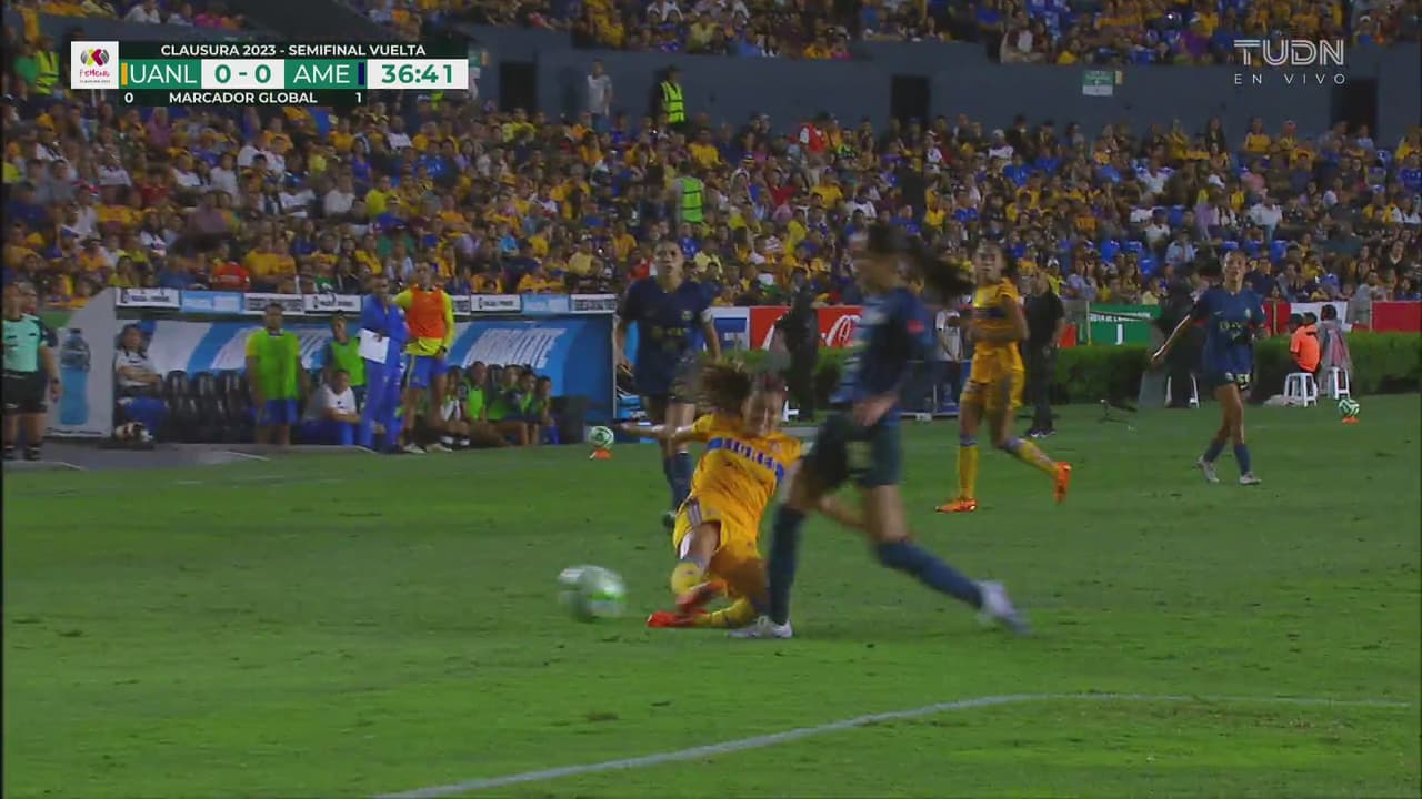 Natalia Villareal es amonestada por la barrida sobre la americanista, quien no requirió salir en ambulancia.