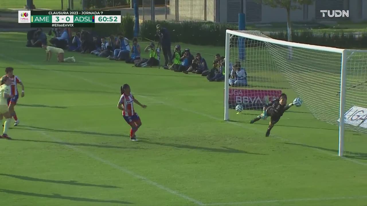 Buen centro por la izquierda que conectó Martínez y que la portera de San Luis atajó al 60’.