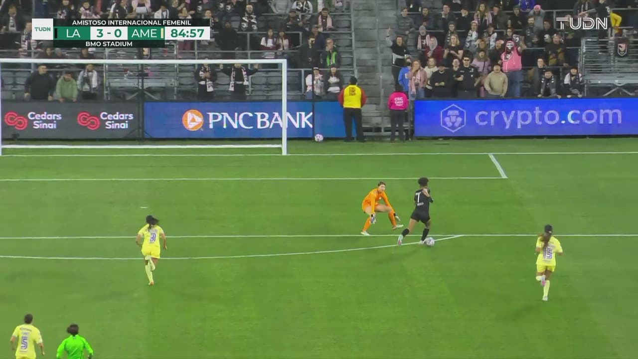 Balón filtrado para la delantera, quien eludió a la portera del América para definir ante portería desguarnecida.