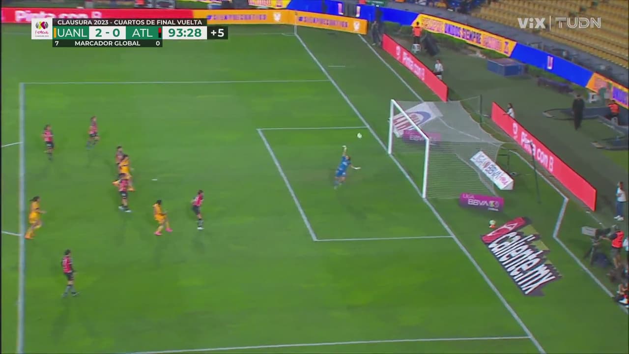 La mediocampista de Tigres recibió sola y casi anota el tercero, pero la portera de Atlas lo evitó.